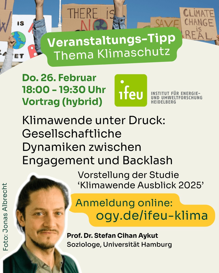 Hybridveranstaltung: vor Ort und online. Termin: 26. Februar 2026, 18:00–19:30 Uhr. Ort: ifeu – Institut für Energie- und Umweltforschung, Wilckensstraße 3, 69120 Heidelberg Anmeldung, Onlinezugang